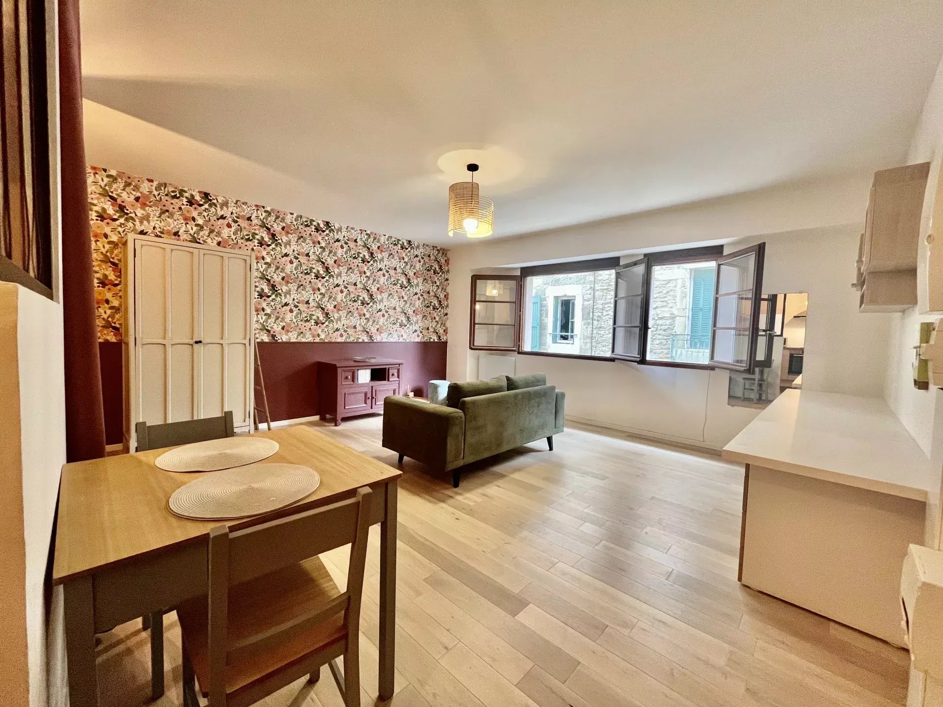 Charmant T1 entièrement rénové et meublé avec goût. Au centre ville de Bourgoin Jallieu, rue piétonne.